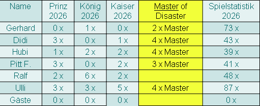 von Gerd ergeben. Didi verlor ebenfalls 5 Spiele und unser Hubertus hielt sich an
