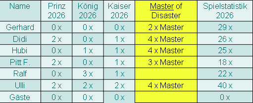Mit 8 verlorenen Spielen war Didi, also ich, der Looser des Abends. Ulli behält seine