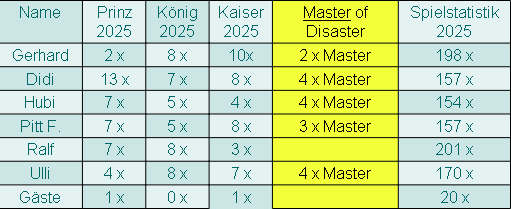 zusammen), aber unser Peter übernahm die evtl. verlorenen Spiele von Hubi (der ja